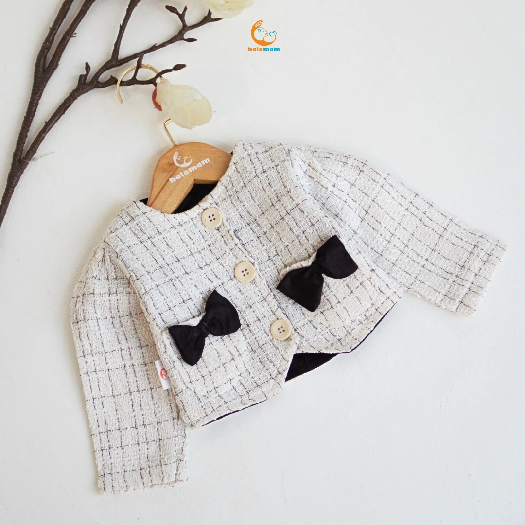 Dengan desain elegan dan klasik. Terbuat dari bahan tweed premium yang memberikan sentuhan mewah namun tetap nyaman digunakan. Dengan kancing depan dan saku aktif, blazer ini sempurna untuk acara formal seperti pesta atau pertemuan keluarga.