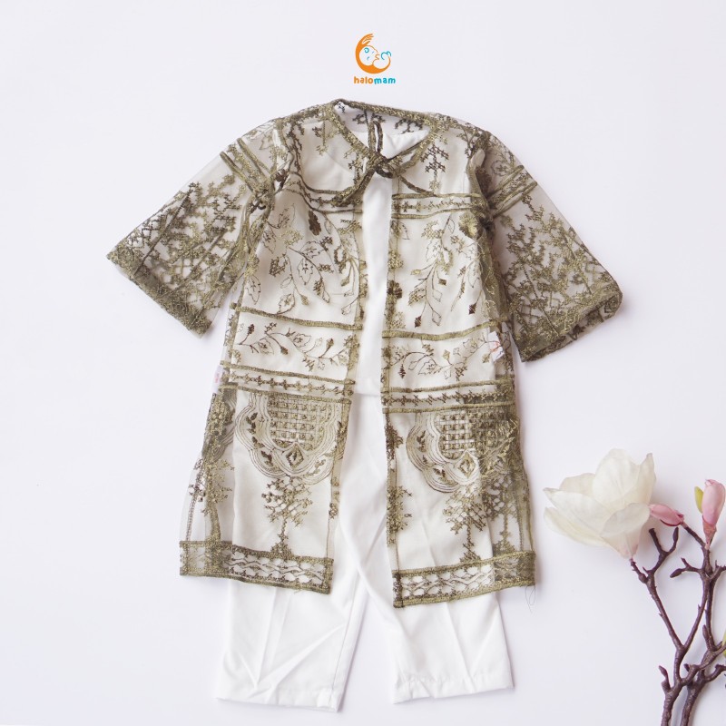 Dengan desain elegan dan klasik. Terbuat dari bahan premium yang memberikan sentuhan mewah namun tetap nyaman digunakan. Dengan tali pita aktif setelan ini sempurna untuk acara formal seperti pesta atau pertemuan keluarga.