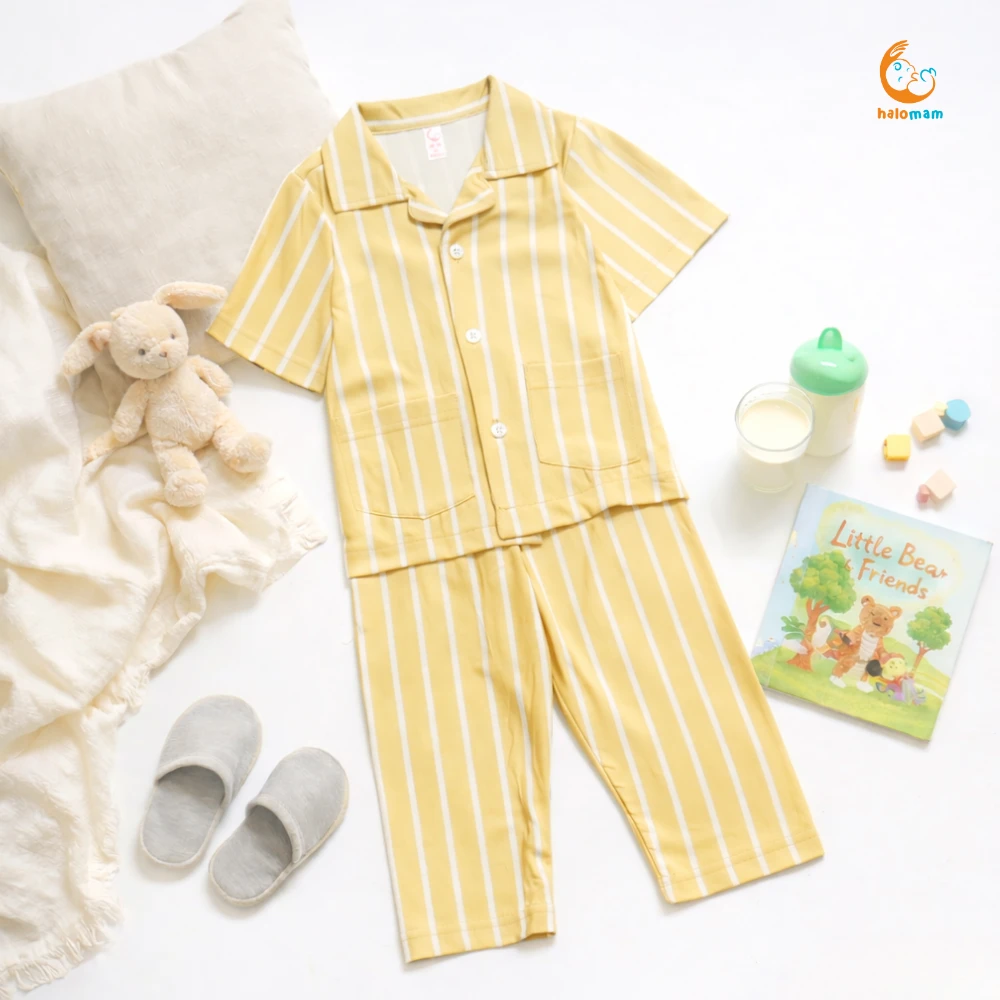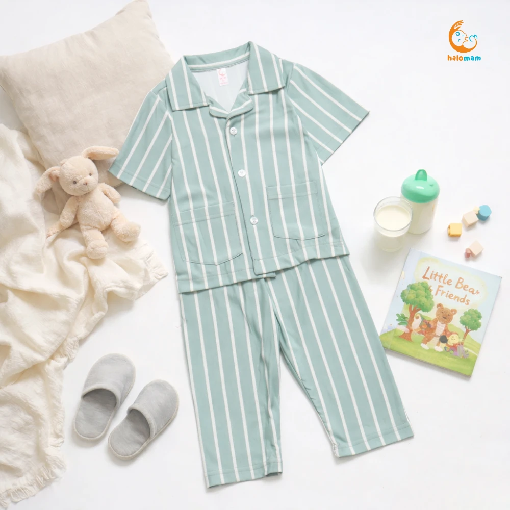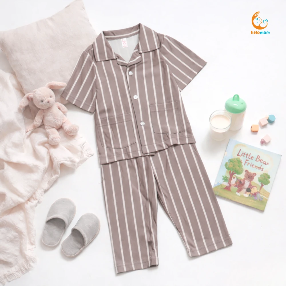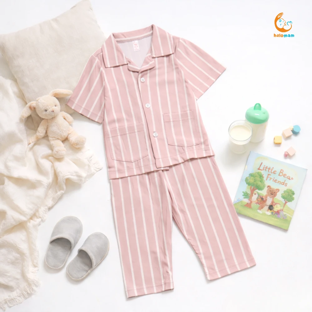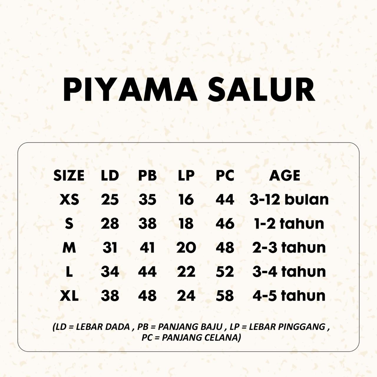 #Note# #Silahkan chat admin terlebih dahulu ya mom untuk menanyakan ketersediaan barang ada atau tidaknya karena produk yang sudah di checkout TIDAK dapat di CANCEL ^^ terima kasih mom sudah baca deskripsi dengan baik PIYAMA SALUR Yeay yang udah pada nungguin koleksi setelan by halomam sudah ready ya moms ^.^ Bikin waktu tidur dan santai si kecil makin nyaman dengan piyama salur ini. Dibuat dari bahan lembut, adem, dan ringan, cocok banget dipakai sehari-hari. Motif garis salur klasik yang timeless, bikin anak tampil gemas meski hanya di rumah. Berikut detail sizenya ya moms: 3-12 bulan : Rekomendasi size XS/S 12-24 bulan : Rekomendasi size S/M 2-3 tahun : Rekomendasi size M/L 3-4 tahun : Rekomendasi size L/XL 4-5 tahun : Rekomendasi size XL XS : LD 25 cm, PB 35 cm , LP 16 cm , PC 44 cm S : LD 28 cm , PB 38 cm , LP 18 cm , PC 46 cm M : LD 31 cm , PB 41 cm , LP 20 cm , PC 48 cm L : LD 34 cm, PB 44 cm , LP 22 cm , PC 52 cm XL : LD 38 cm , PB 48 cm , LP 24 cm , PC 58 cm keterangan: LD : Lebar Dada PB : Panjang Baju LP : Lebar Pinggang PC : Panjang Celana Toleransi size +- 1-2cm Tersedia warna yang super kece banget ya moms! untuk rekomendasi usianya 3 Bulan - 5 tahun nih mam, cuss langsung aja kepoin dan checkout karena stok terbatas banget momy :(