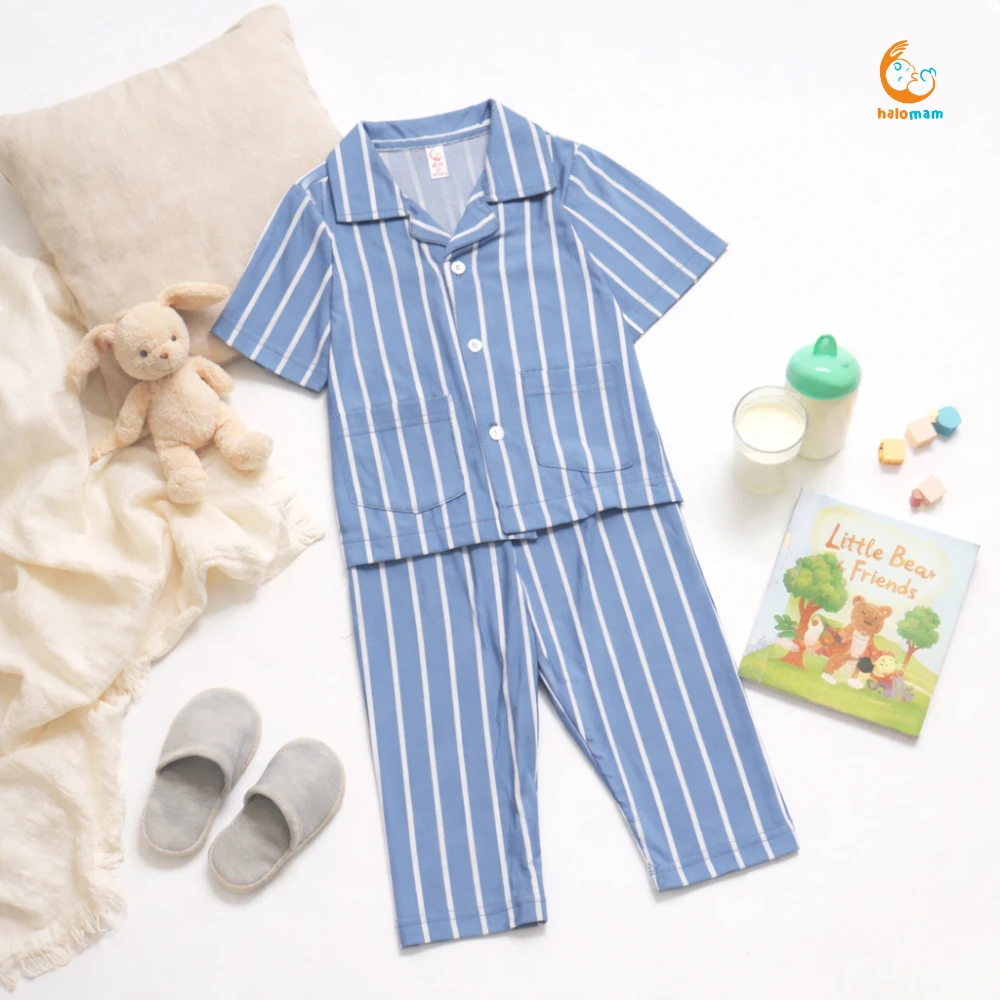 #Note# #Silahkan chat admin terlebih dahulu ya mom untuk menanyakan ketersediaan barang ada atau tidaknya karena produk yang sudah di checkout TIDAK dapat di CANCEL ^^ terima kasih mom sudah baca deskripsi dengan baik PIYAMA SALUR Yeay yang udah pada nungguin koleksi setelan by halomam sudah ready ya moms ^.^ Bikin waktu tidur dan santai si kecil makin nyaman dengan piyama salur ini. Dibuat dari bahan lembut, adem, dan ringan, cocok banget dipakai sehari-hari. Motif garis salur klasik yang timeless, bikin anak tampil gemas meski hanya di rumah. Berikut detail sizenya ya moms: 3-12 bulan : Rekomendasi size XS/S 12-24 bulan : Rekomendasi size S/M 2-3 tahun : Rekomendasi size M/L 3-4 tahun : Rekomendasi size L/XL 4-5 tahun : Rekomendasi size XL XS : LD 25 cm, PB 35 cm , LP 16 cm , PC 44 cm S : LD 28 cm , PB 38 cm , LP 18 cm , PC 46 cm M : LD 31 cm , PB 41 cm , LP 20 cm , PC 48 cm L : LD 34 cm, PB 44 cm , LP 22 cm , PC 52 cm XL : LD 38 cm , PB 48 cm , LP 24 cm , PC 58 cm keterangan: LD : Lebar Dada PB : Panjang Baju LP : Lebar Pinggang PC : Panjang Celana Toleransi size +- 1-2cm Tersedia warna yang super kece banget ya moms! untuk rekomendasi usianya 3 Bulan - 5 tahun nih mam, cuss langsung aja kepoin dan checkout karena stok terbatas banget momy :(